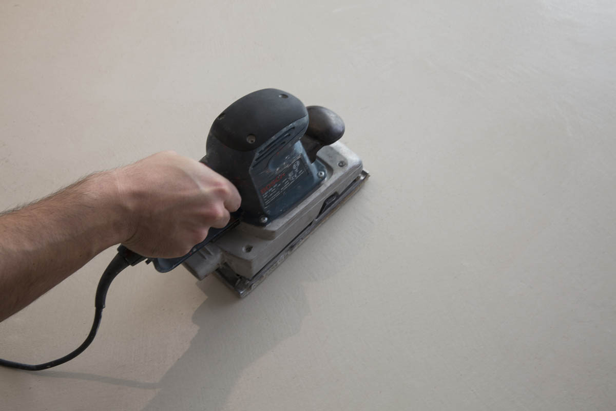 Αφού διαστρωθεί η δεύτερη στρώση, υπάρχει αρκετός χρόνος ώστε να προπαρασκευασθεί το υλικό για την τρίτη στρώση. Δεν αποκλείεται βέβαια να έχει περισσέψει υλικό από την δεύτερη, το οποίο δεν διαφέρει από το υλικό της τρίτης στρώσης. Το θέμα είναι ο χρόνος πήξης του διαστρωθέντος υλικού ώστε να μπορεί να πατηθεί και αυτός εξαρτάται από την θερμοκρασία του αέρα και την υγρασία. Σε γενικές γραμμές πρέπει να μπορούμε να πατήσουμε με ασφάλεια στο διαστρωθέν υλικό, πράγμα το οποίο γίνεται στις περισσότερες περιπτώσεις μετά από 25 λεπτά, αλλά μπορεί να χρειαστεί έως και 1 ώρα. Πατάμε ανυπόδητοι, ή με κάλτσες που δεν αφήνουν αποτύπωμα.